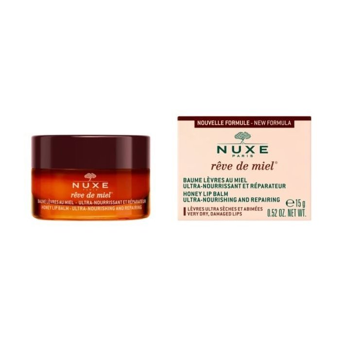 Balzam na pery NUXE Rêve de Miel je intenzívna výživa pre veľmi suché a poškodené pery. Jeho bohatá textúra s medom, propolisom a vzácnymi rastlinnými olejmi (mandľový a ružový olej) okamžite upokojuje, vyživuje a regeneruje pery. Poskytuje dlhotrvajúcu hydratáciu a vytvára ochranný film, ktorý chráni pery pred vonkajšími vplyvmi. Prírodná vôňa grapefruitu a citrónu dodáva pocit sviežosti a pohody.