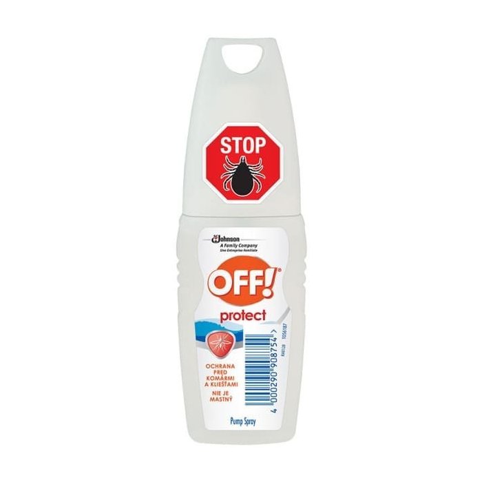 OFF!® Protect rozprašovač repelent s mechanickým rozprašovačom chráni pokožku proti komárom až 2 hodiny a proti kliešťom až 3 hodiny. Prípravok je ľahko parfumovaný a nie je mastný. OFF!® Protect poskytuje spoľahlivú ochranu pred kliešťami s komármi.