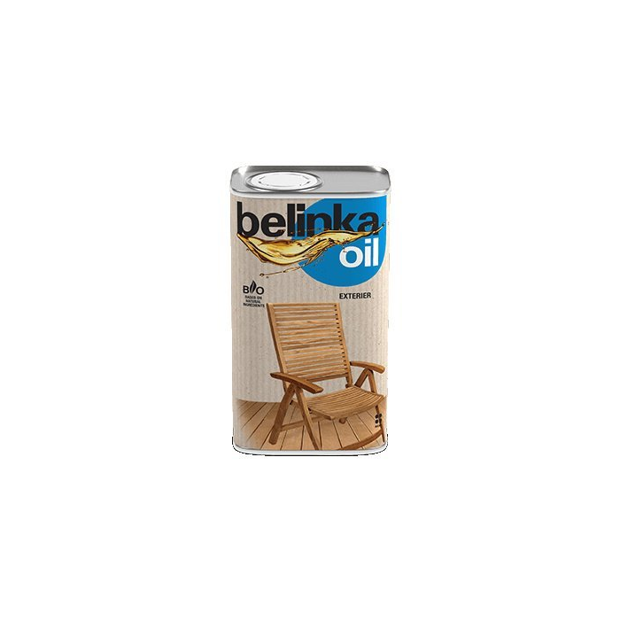 Belinka Oil Exterier je bezfarebná bio impregnácia zložená z prírodných rastlinných olejov na ochranu a ošetrenie vonkajších drevených povrchov (podlahy, záhradný nábytok, stavebný nábytok a pod.) vyrobených z odolných typov dreva (teak, dub, akácia, gaštan, a pod.).