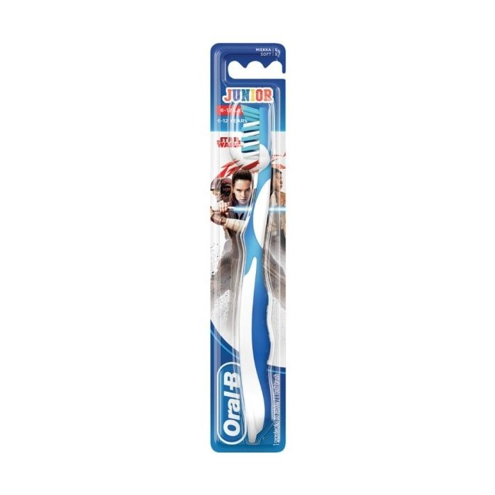 Manuálna zubná kefka Oral-B Junior s postavami zo Star Wars je navrhnutá špeciálne pre 6-12 ročné deti. Štetinky CrissCross pomáhajú odstrániť zubný povlak.