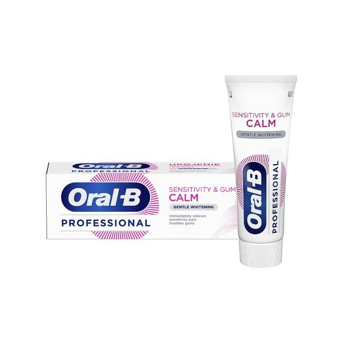 Oral-B zubná pasta Professional Sensitivity & Gum Calm Gentle Whitening poskytuje okamžitú úľavu od bolesti spôsobenej citlivosťou zubov a upokojuje ďasná pre príjemný pocit v ústach.