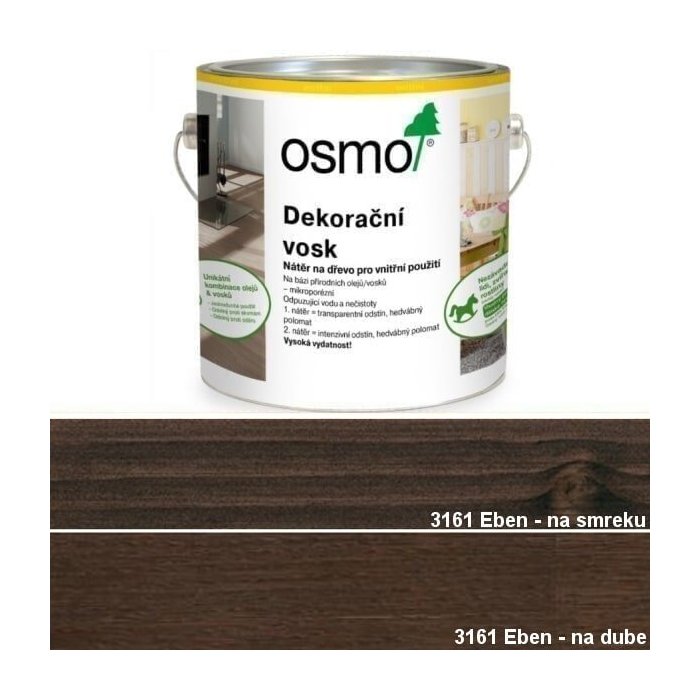 OSMO Dekoračný vosk transparentný s hodvábnym leskom je založený na báze prírodných olejov - voskov. Obzvlášť je vhodný do interiéru na nátery nábytku a detských hračiek, na profilované drevo a podlahy. Povrch je odolný voči oteru, odpudzuje vodu a nečistoty a zároveň je odolný voči chemikáliam používaných v domácnosti.
