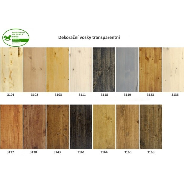 Transparentná farebná konečná úprava povrchu s hodvábnym leskom, ktorá v jednom výrobku jedinečným spôsobom spája výhody prírodných olejov a voskov. Povrch s úpravou Osmo Dekoračným voskom transparentným je nenáchylný k zašpineniu, odpudzuje vodu, je odolný proti oderu a príjemný na dotyk. V porovnaní s obvyklými systémami náterov sa použitím obsiahnutých rastlinných látok dosiahne rovnomernejšie farebného stvárnenia a tiež harmonického vzhľadu. Jednoduché použitie - bez základného náteru a obrusovanie - šetrí čas a peniaze. Povrch má otvorené póry, neodprýskává, nepraská a neodlupuje sa. Odolný voči pivu, kole, káve, čaji, ovocnej šťave, mlieku a vode podľa DIN 68861-1C - žiadne škvrny od vody. Uschnutý náter je nezávadný pre ľudí, zvieratá a rastliny (odolný voči slinám a potu podľa DIN 53160, vhodný pre detské hračky podľa EN 71.3).