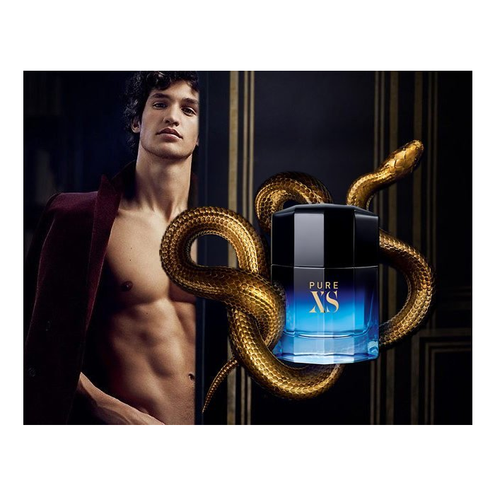 Pure XS je plný života, príťažlivý a sviežo orientálny s trvalým protikladom medzi chladom a teplom, jemnosťou a intenzitou. Dva pocity, ktoré sa vzájomne prelínajú a priťahujú. Prvý dojem: explozívna sviežosť. Milostná predohra zmyslov sa rozdivočí s príchodom ľadovej sviežosti zázvoru. Druhá živočíšna vlna: zelená smotana rastlinných štiav a mužného tymiánu. Škorica dodáva pikantný dotyk a korenistý hriech! Nasledovaný náporom sily s hlbokou a noblesnou vanilkou luhovanou s koženou likérovo pižmovou vlnou. Potom vôňa klesá do pulzujúceho tepla pocukrovanej myrhy.