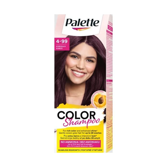 Tento farebný šampón bez amoniaku má inovatívne zloženie, ktoré pomáha znižovať lámavosť vlasov a zároveň poskytuje jemné a účinné krytie šedín. Obohatený o marhuľový olej podporuje starostlivosť o vlasy počas farbenia a zanecháva ich jemné, hladké a zdravo vyzerajúce. Farba sa postupne vymýva, čím zabezpečuje plynulý prechod medzi prirodzenými a farbenými vlasmi a redukuje vzhľad odrastených vlasov. Vďaka jednoduchej aplikácii podobnej šampónu ponúka Palette pohodlné riešenie pre bežné farbenie vlasov už za 30 minút.