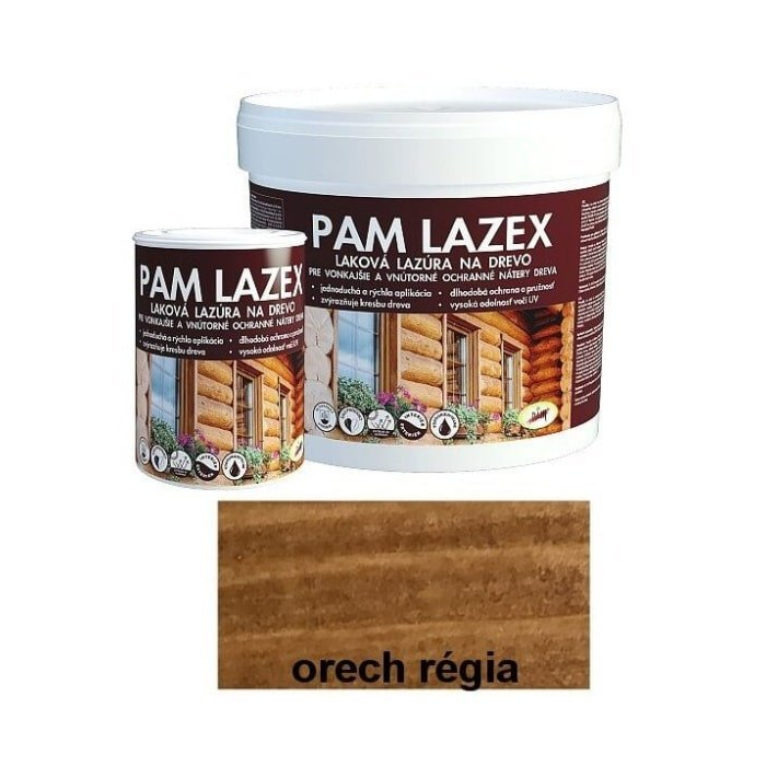 PAM LAZEX Lazúrovací lak na drevo je určený na ochranné nátery drevených chát, obkladov, štítov, plotov, záhradného nábytku, obkladov, stropov v exteriéri a interiéri. Je vhodný aj na nátery okien a dverí, dokonale zvýrazňuje kresbu dreva. Je odolný voči teplotným zmenám, poveternostným vplyvom a voči UV žiareniu.