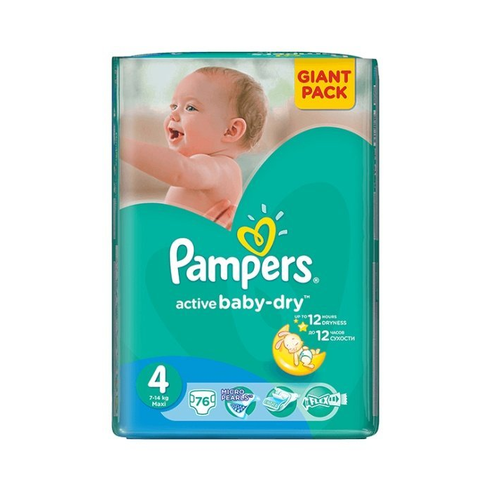 PAMPERS Active Baby 4 Maxi, Plienky pre deti od 7 do 14kg 76ks Plienky Pampers pomáhajú Vašemu dieťatku voľne sa pohybovať a chránia jeho pokožku. Absorbčné jadro uzamyká vlhkosť a zaisťuje tak maximálnu suchosť a ochranu pokožky. Jadro premení moč dieťatka na malé gelové guličky, ktoré bezpečne uzavrie vnútri plienky. Povrchová vrstva obsahuje balzam Bath Fresh, ktorý zaručuje pocit pohodlia a sviežosti. Vrstva urýchľuje odvod vlhkosti, aj keď sa Vaše miminko rozhodne postaviť na hlavu. Na povrchu plienky sú prúžky s balzamom, ktorý chrání pokožku proti podráždeniu. Vnútorná vrstva plienky je vyrobená z veľmi jemného a dokonale priedušného materiálu. Upevňovací systém Pampers: - široká upevňovacia zóna a pásiky suchých zipsov pre bezpečné upevnenie plienky - vnútorné elastické manžety a záložky okolo nožičiek pomáhajú zabrániť pretekaniu