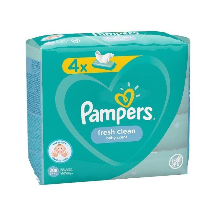 Vlhčené obrúsky PAMPERS Fresh Clean sa stanú praktickým pomocníkom pri starostlivosti o vaše bábätko. Sú vhodné pre normálnu pokožku a dajú sa použiť na ruky, tvár aj zadoček. Veľmi jemne a šetrne odstránia všetky nečistoty, navyše pomáhajú udržiavať prirodzené pH pokožky vášho bábätka. Iste si obľúbite sviežu vôňu obrúskov PAMPERS Fresh Clean, ktorá pripomína detské pleťové mlieko.