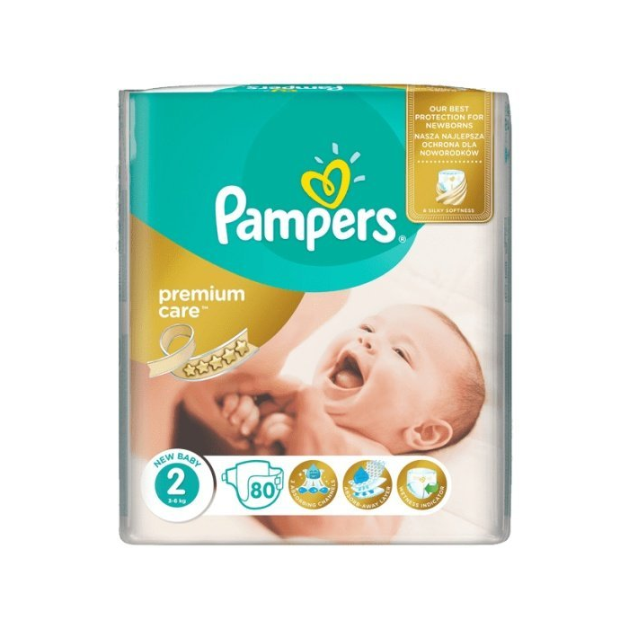 PAMPERS Premium Care 2, Najhebkejšie jednorázové plienky pre deti, od 3kg do 6kg, 80ks Pampers Premium Care sú skutočne najhebkejšie a najkomfortnejšie plienky pre deti z rady Pampers. Povrch pripomína čistú bavlnu. Majú špeciálnu povrchovú vrstvu s otvormi, ktorá absorbuje moč, taktiež riedku stolicu. Majú veľmi priedušný vonkajší materiál, ktorý umožňuje pokožke dieťatka dýchať. Premium Care okrem dokonalej hebkosti obsahujú päť prúžkov s pleťovým mliekom, obohateným o Aloe Vera, čím chráni pokožku dieťatka. Zapínanie plienok je pomocou pružných zapínacích pásov, veľmi dobre sa prispôsobí.