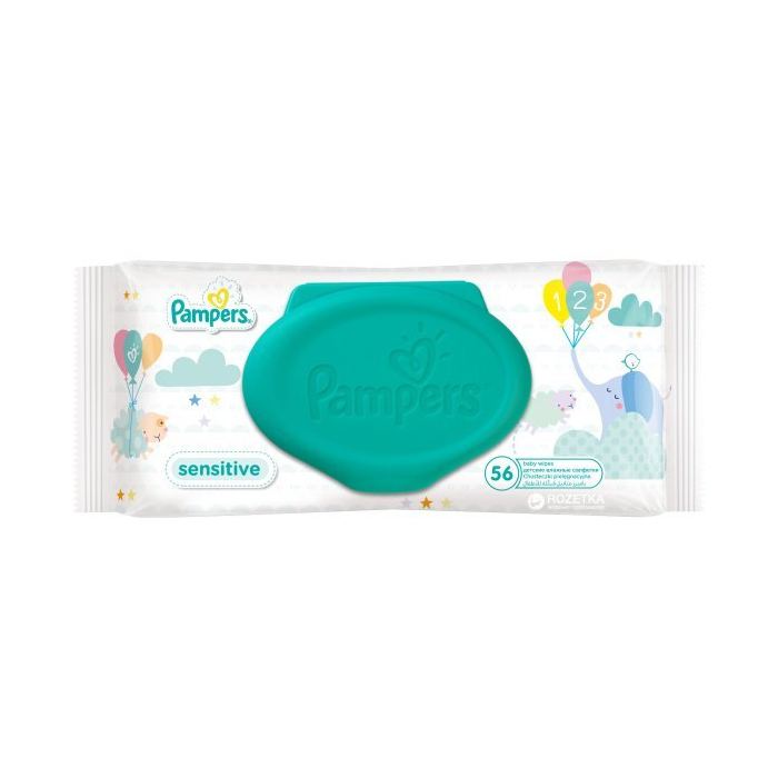 Pampers Sensitive Detské vlhčené obrúsky 56ks Čistaice obrúsky od Pampers - Sensitive sú mäkké vlhčené obrúsky, ktoré su vyvinuté špeciálne pre novorodencov a detičky s citlivou pokožkou. Pokožku dieťatka šetrne a jemne čistia a zároveň obnovujú jej prirodzené pH, a tým ju pomáhajú chrániť. * Pampers Sensitive vlhčené obrúsky neobsahujú parfum ani alkohol * sú obohatené o harmanček a aloe vera * ponúkajú pokožke jemnú starostlivosť a čistotu