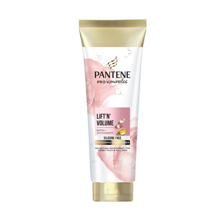 PANTENE PRO-V miracles kondicionér na vlasy Lift'N'Volume na zhustnutie vlasov je obohatený o biotín, antioxidanty a najvyššiu koncentráciu Pro-V. Toto zázračné zloženie pomáha posilniť slabé a zľahnuté vlasy, aby boli odolné proti poškodeniu spôsobenému úpravou účesu. Vlasy sú viditeľne silnejšie a plnšie, a to už po prvom použití. Tento kondicionér bez silikónu obsahuje 3x viac PRO-V a je vhodný na každodenné použitie.