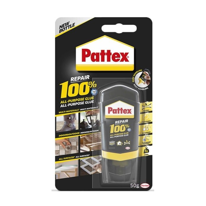 PATTEX 100 % je univerzálne lepidlo na báze FLEXTEC polyméru, vhodné na domáce, modelárske a opravárske práce v interiéri i exteriéri.