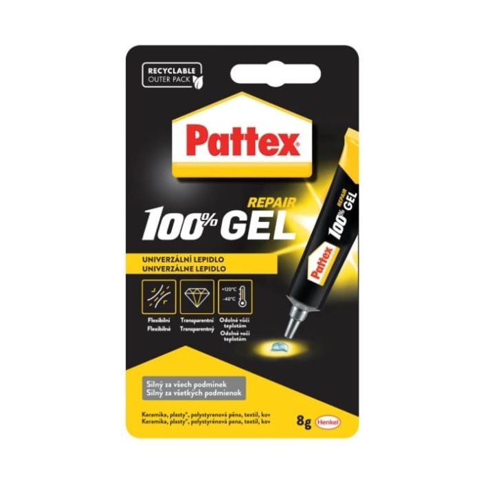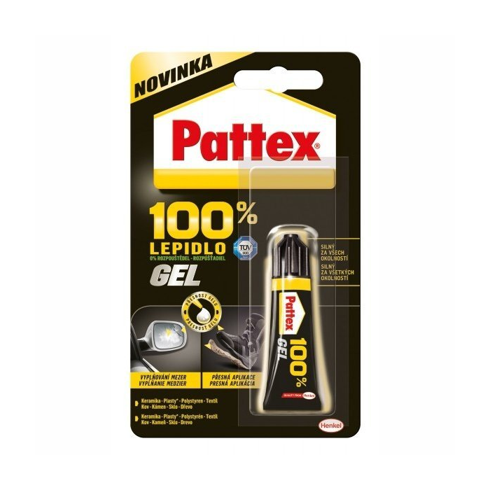 PATTEX 100 % je spoľahlivé univerzálne lepidlo na báze FLEXTEC polyméru vhodné na kutilské, modelárske a opravárenské práce v interiéri aj exteriéri alebo na vytváranie dekoratívnych predmetov. Lepidlo sa nezmršťuje a poskytuje mimoriadne pevný, transparentný a flexibilný spoj, ktorý odoláva vode, nárazom, UV žiareniu a teplotám od -50 °C do +80 °C. Dokonale vypĺňa medzery a trhliny. Lepidlo je bez zápachu, neobsahuje vodu a rozpúšťadlá.