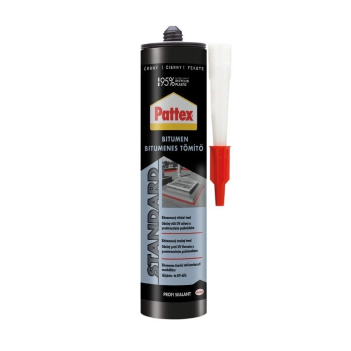 PATTEX Bitumenový strešníý tmel je plasticko-elastická tesniaca hmota na báze polyméru a bitumenu s obsahom rozpúšťadiel. Produkt je určený na lepenie a opravy rôznych povrchov, opravy striech, drenážnych prvkov, komínov apod. Vhodný aj na použitie pri výstavbe skleníkov, na utesnenie základov a ako iná podzemná izolácia.