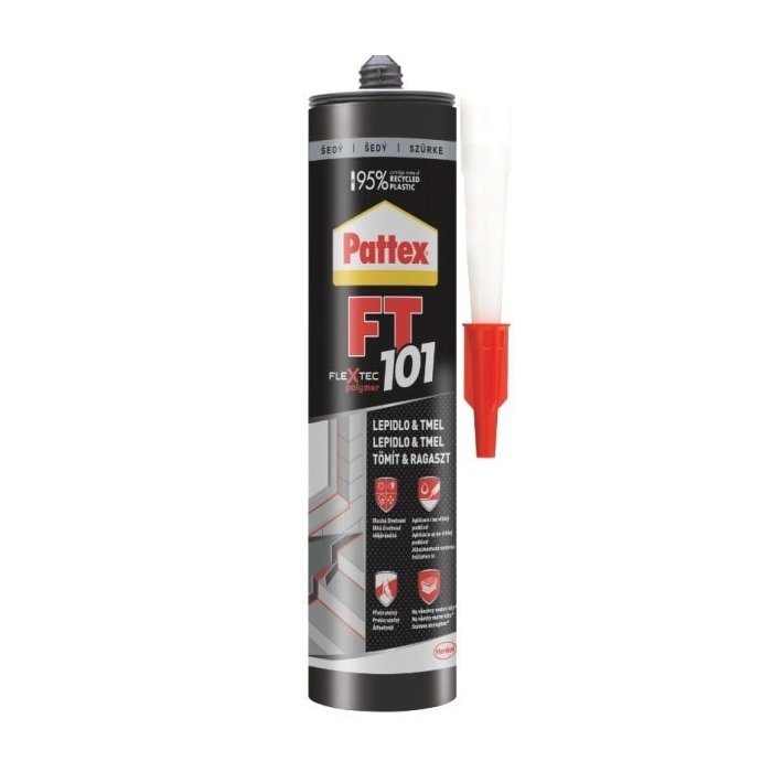 PATTEX FT 101 je viacúčelový, elastický lepiaci tmel určený na použitie v interiéri aj exteriéri, založený na technológii Flextec®.