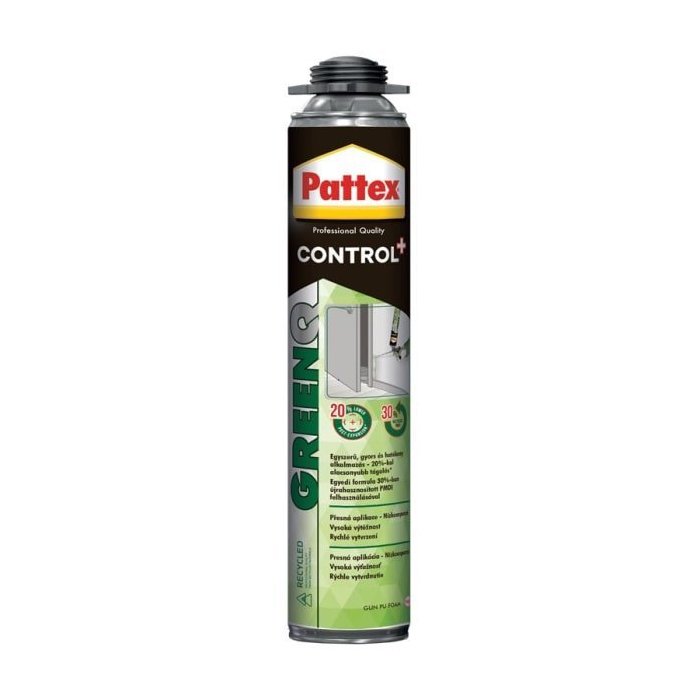 PATTEX GreenQ je nízkoexpanzná pištoľová PU pena vyrobená z recyklovaných materiálov. Má veľmi dobré technické parametre - o 20% nižšiu post-expanziu, vysokú výťažnosť, výborné tepelno-izolačné vlastnosti a skvelú priľnavosť na väčšinu stavebných materiálov. Je rýchlotvrdnúci.