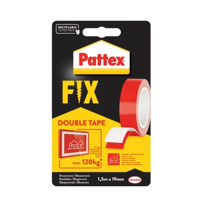 PATTEX Obojstranná lepiaca páska je univerzálna lepiaca páska na okamžitú a pevnú fixáciu predmetov v domácnosti, kancelárii, v aute a pod.