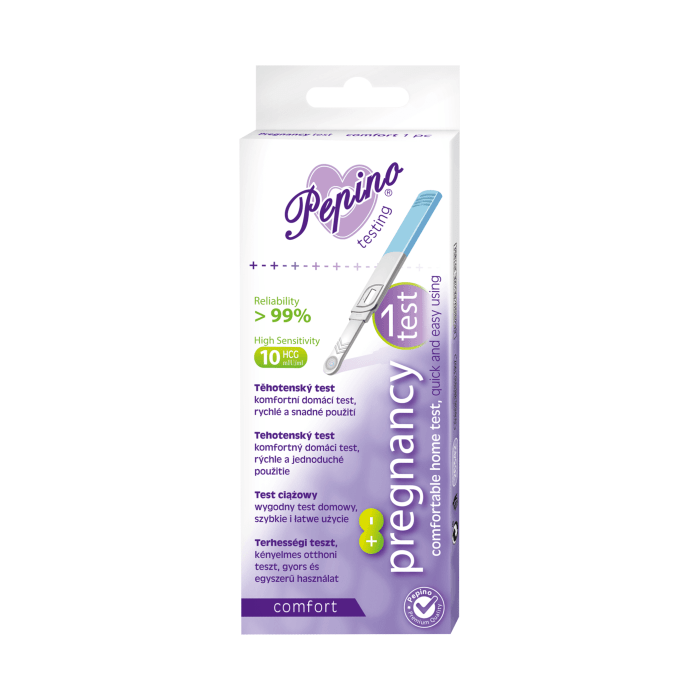 Pepino tehotenský test je vysoko citlivý tehotenský test pre domáce použitie. S tehotenským testom Comfort možno zistiť tehotenstvo vo veľmi ranom štádiu - 2 dni od počatia, zhruba 7 dní pred očakávanou menštruáciou. V skorom štádiu tehotenstva oplodnené vajíčko produkuje hormón HCG, ktorý sa nachádza v moči. Prítomnosť tohto hormónu je zisťovaná pomocou protilátok, ktoré sú viazané na častice koloidného zlata.