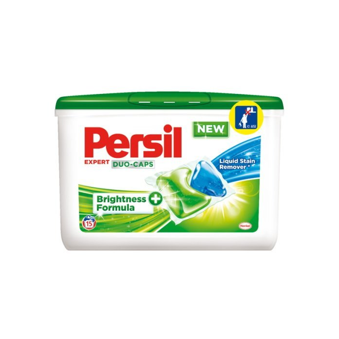 Persil Duo Caps box, gélové kapsule na biele prádlo 15 kusov = 15 praní 15 kapsúl = 15 praní Persil Duo Caps je nový koncentrovaný dávkovaný prací prostriedok s integrovanými enzýmami na odstránenie škvŕn na bielu a stálofarebnú bielizeň, pre všetky typy práčok. Dvojkomorová kapsula Persil Duo-Caps ponúka moderné riešenie pre vaše pranie s účinnou kombináciou tekutého odstraňovača škvŕn, posilňovača žiarivých a janých farieb pre dokonale čisté oblečenie a naviac s dlhotrvajúcou sviežosťou. Jednoduché použitie Persil Duo-Caps. Vložte jednu kapsulu priamo do bubna práčky ešte pred pridaním oblečenia. Po kontakte s vodou sa kapsula ihneď rozpustí a uvoľní tak 100% pracej sily priamo do vlákien oblečenia. V porovnaní s pracím gélom kapsula obsahuje dvojnásobne koncentrované zloženie. Väčšina zložiek gelových kapsúl je aktívna už pri 20 oC. Teplota prania: 20 - 95 oC. Balenie 15ks.