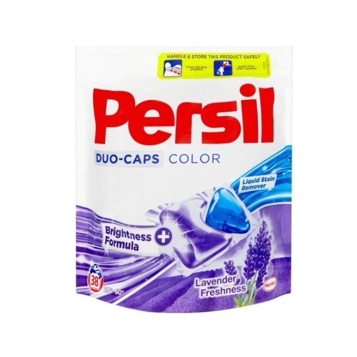 Persil Duo Caps Color Levander, gélové kapsule na farené prádlo, 38 kapsúl = 38 praní 38 kapsúl = 38 praní Persil Duo Caps Color Levander je nový koncentrovaný dávkovaný prací prostriedok s integrovanými enzýmami na odstránenie škvŕn na bielu a stálofarebnú bielizeň, pre všetky typy práčok. Dvojkomorová kapsula Persil Duo-Caps ponúka moderné riešenie pre vaše pranie s účinnou kombináciou tekutého odstraňovača škvŕn, posilňovača žiarivých a janých farieb pre dokonale čisté oblečenie a naviac s dlhotrvajúcou sviežosťou. Jednoduché použitie Persil Duo-Caps. Vložte jednu kapsulu priamo do bubna práčky ešte pred pridaním oblečenia. Po kontakte s vodou sa kapsula ihneď rozpustí a uvoľní tak 100% pracej sily priamo do vlákien oblečenia. V porovnaní s pracím gélom kapsula obsahuje dvojnásobne koncentrované zloženie. Väčšina zložiek gelových kapsúl je aktívna už pri 20 oC. Teplota prania: 20 - 95 oC. Balenie 38ks.