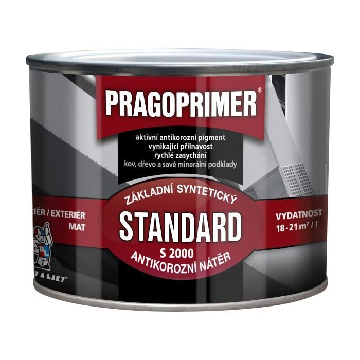 Pred použitím obsah dôkladne zamiešajte, podľa potreby narieďte. Náter kovu: 1 náter PRAGOPRIMER STANDARD S 2000, doba schnutia 24 hodín (môže sa urýchliť prisúšaním do 80 °C), optimálna hrúbka vrstvy 25 – 30 mikrometrov; tmelenie potrebných miest (napr. BKP Rapid TOS) a ich následné prebrúsenie za mokra brúsnym papierom č. 180 – 220; + náter PRAGOPRIMER STANDARD S 2000; prebrúsiť brúsnym papierom č. 280; 1 – 2 nátery lesklým emailom INDUSTROL UNIVERZÁL S 2013, INDUSTROL PLUS S 2071 alebo matným INDUSTROL UNIMAT S 2075. Náter nasiakavého podkladu: 1x napustiť lazúrou LAZUROL CLASSIC S 1023 alebo LAZUROL IMPREGNAČNÝ ZÁKLAD S 1033, schnutie 24 hodín; 1 náter PRAGOPRIMER STANDARD S 2000. schnutie 24 hodín; (v prípade potreby tmelenia sa postupuje ako pri nátere kovu); 1 – 2 nátery emailom INDUSTROL UNIVERZÁL S 2013; INDUSTROL PLUS S 2071 alebo INDUSTROL UNIMAT S 2075.