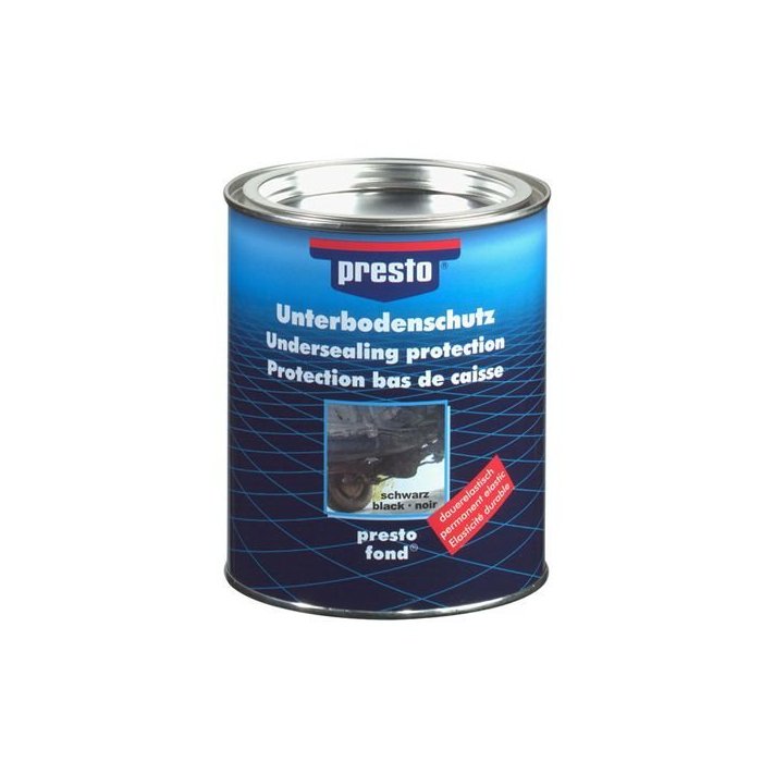 Presto Underbody Protection Bitumen vytvára viskoplastické, trvácne tesnenie na spodnej časti strojov, vozidiel a v podbehoch kolies všetkých typov motorových vozidiel.