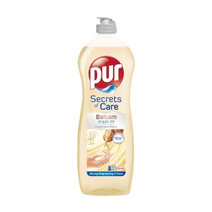 Pur prostriedok na umývanie riadu dodá vášmu riadu dokonalú čistotu a lesk. Vďaka novému zloženiu s účinnými enzýmami odstráni mastné škvrny, pripáleniny alebo zvyšky zaschnutého jedla. Obsahuje výťažky argánového oleja.