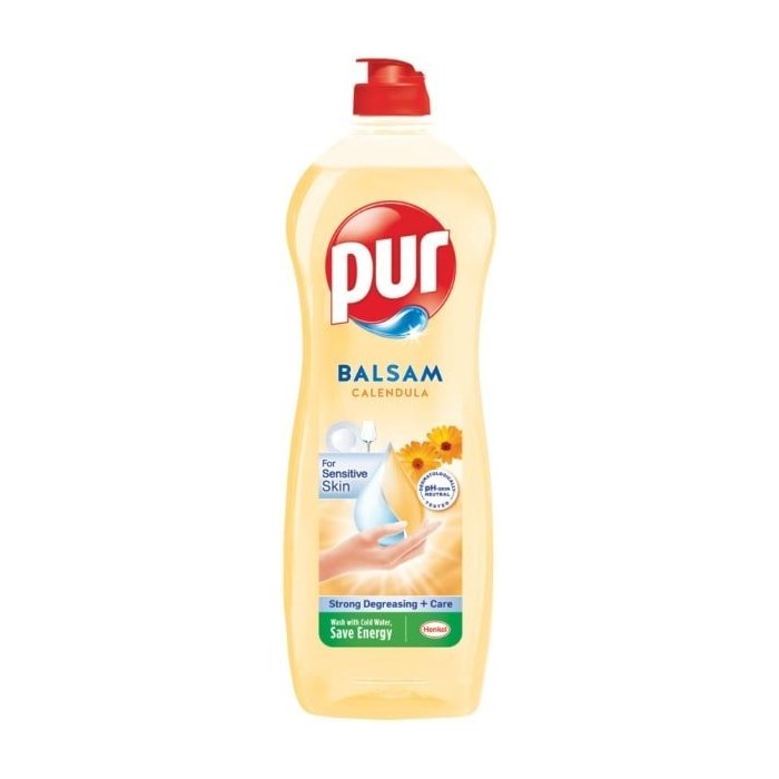 Objavte nový Pur Balsam, čistiaci prostriedok na ručné umývanie riadu, s jemnou vôňou nechtíka a s pH neutrálnemu k pokožke. Vysoká odmasťovacia sila v koncentrovanom zložení Pur Balsam je účinná proti odolnej mastnote a škrobu. Vďaka vylepšenému zloženiu je možné umývať riad aj v studenej vode a vy tak môžete šetriť energiu. Dermatologicky testované.