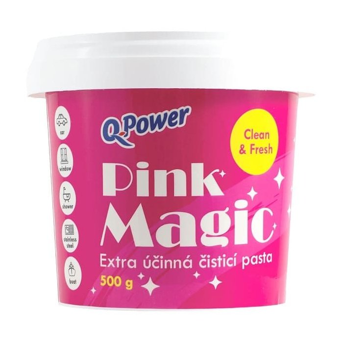 Objavte kúzlo ružové! Q-Power Pink Magic je univerzálna čistiaca pasta, ktorá si poradí aj s najodolnejšou špinou. Skvele sa hodí do kuchyne, kúpeľne aj na vonkajšie použitie – všade tam, kde chcete rýchlo a ľahko dosiahnuť dokonale čistý a lesklý povrch.