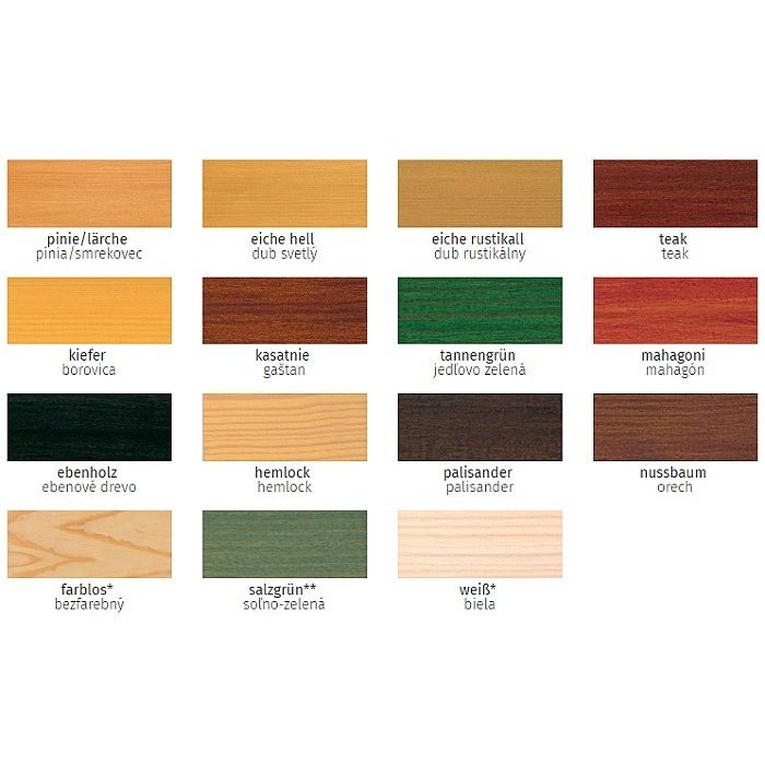 Dekoratívna, tenkovrstvová olejová lazúra na báze rozpúšťadiel s obsahom účinných látok.