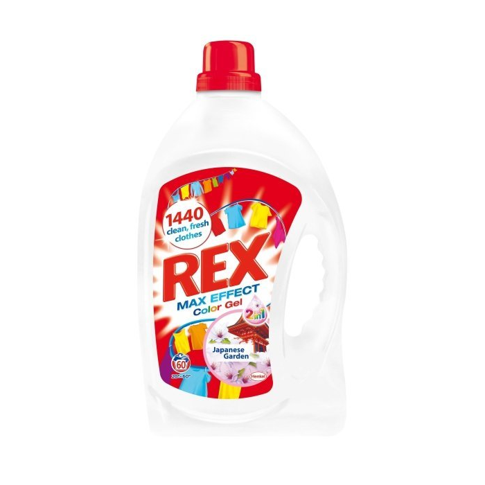 REX Max Effect Color gel Japanese Garden, prací gél na farebnú bielizeň 3,96l = 60 praní REX Max Effect Color gel Japanese Garden dokáže vďaka svojmu silnému zloženiu a kombinácii piatich enzýmov pôsobiť aj na odolné škvrny a zaručí vášmu oblečeniu dokonalú čistotu. Pranie pri nízkej teplote šetrí energiu a peniaze. Naviac inovatívne zloženie Rexu vytvára okolo moderných vlákien (polyester, zmes bavlny a polyesteru) ochrannú vrstvu, ktorá funguje ako štít proti škvrnám. Mastnota, kozmetika alebo omáčka na špagety nemajú šancu k týmto látka priľnúť, a preto sa prádlo veľmi jednoducho vyperie. REX Max Effect power gel - Japanese Garden prací prášok je vhodný pre všetky druhy práčok a na ručné pranie. Neobsahuje fosfáty.