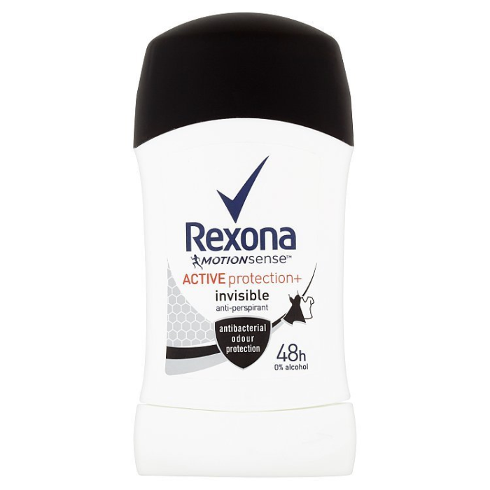 Tuhý antiperspirant pre ženy 48H Active Protection + Invisible od značky Rexona ponúka spoľahlivú ochranu pred potením po celých 48 hodín. Nezanecháva nevzhľadné škvrny na oblečení. Unikátne zloženie Rexony Antibacterial + poskytuje až 10× vyššiu ochranu proti baktériám.