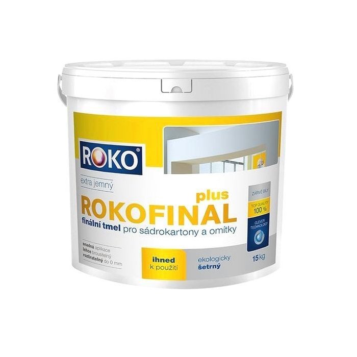 Rokofinal Plus finálny tmel je pastovitá stierková hmota pre okamžité použite. Určená je pre tenkovrstvú konečnú povrchovú úpravu stavebných konštrukcií.