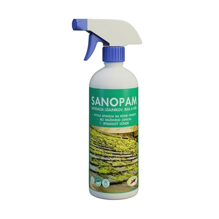 Sanopam slúži na kompletnú sanáciu fasád, kameňa, betónu a iných minerálnych povrchov najmä v exteriéri . Je to vysokoúčinná bezfarebná kvapalina s hĺbkovým účinkom obsahujúca zložky, ktoré spoľahlivo a dlhodobo zlikvidujú riasy, machy, lišajníky a iné nepríjemné mikroorganizmy na rôznych povrchoch. Sanopam má veľmi vysokú účinnosť likvidácie (viac ako 95% mikroorganizmov).