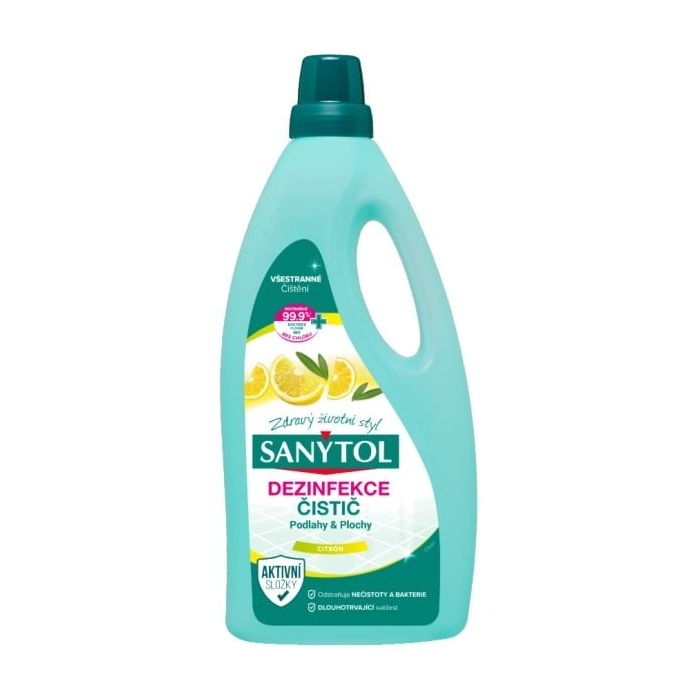 SANYTOL Dezinfekcia univerzálny čistiaci koncetrát na podlahy a veľké plochy čistí a odmasťuje všetky plochy v domácnosti (podlahy, dlaždice, laminátové podlahy, mramor, tehly, kovové plochy….), WC, sanitárne zariadenia, sifóny, plastové a porcelánové predmety.