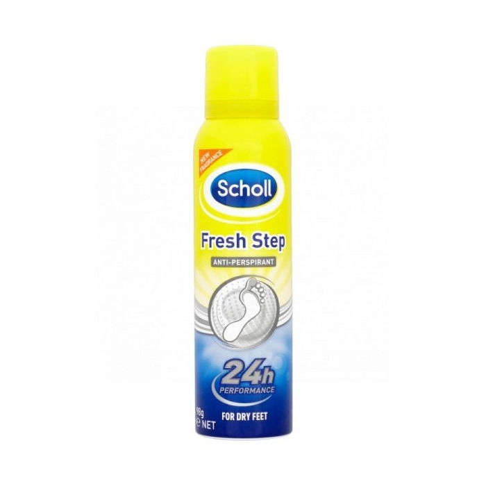 SCHOLL Fresh Step Antiperspirant na nohy 150ml SCHOLL Fresh Step Antiperspirant na nohy v spreji výrazne znižuje potenie a zápach nôh. Tento rýchloschnúci sprej je určený na denné ošetrenie nôh.