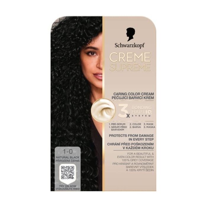 Schwarzkopf Creme Supreme 1-0 Prirodzená čierna: Permanentná farba s revolučnou 3x Bonding HaptIQ ochranou