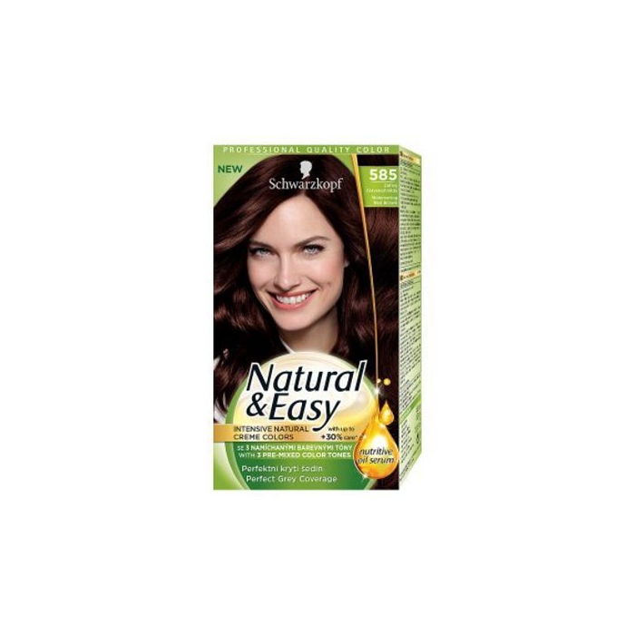 Schwarzkopf Natural & Easy farba na vlasy Trblietavo červenohnedý 585 Ako docielim prirodzenú farbu plnú viacfarebných odleskov? Prirodzená farba vlasov obsahuje viacero farebných tónov a odleskov. Práve vďaka tomu pôsobí tak prirodzene a výrazne. Natural & Easy dokáže to isté, tri harmonizujúce farebné odtiene sú namiešané tak, aby vytvorili žiarivý viacfarebný a prirodzene farebný výsledok. Prečo je Natural & Easy taká ošetrujúca? Natural & Easy - obohatená o vzácne ošetrujúce olejové sérum - ošetruje vlasy a dodá im až do 30% viac lesku*! Pretože iba na zdravo vyzerajúcich a ošetrených vlasoch vyzerá farba obzvlášť žiarivo. *do 30% viac starostlivosti v porovnaní s neošetrenými vlasmi. Je Natural & Easy dlhotrvácna a zosvetlí moje vlasy? Áno! Natural & Easy zosvetlí vlasy až do 3 odtieňov pre nádherný blond odtieň a dlhotrvajúcu, žiarivú farbu plnú viacfarebných odleskov!