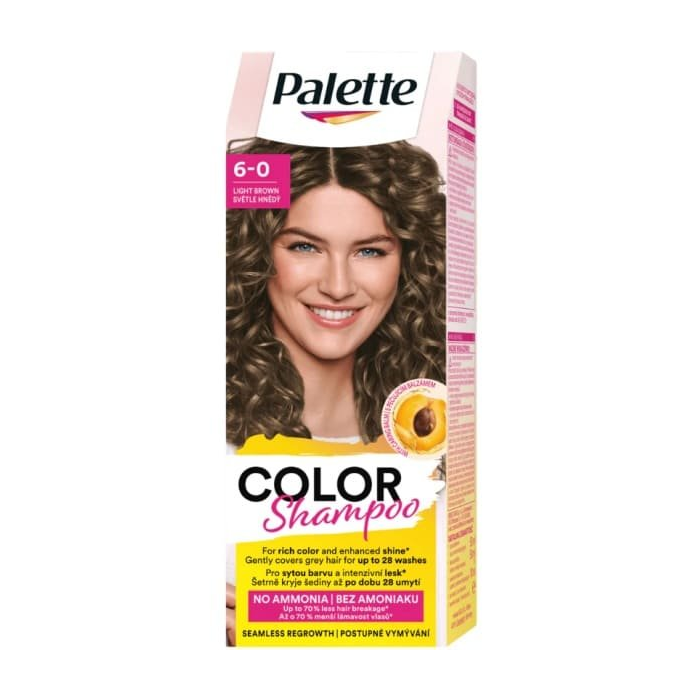 Šampón Palette COLOR 6-0 Svetlohnedá dodáva intenzívny svetlohnedý odtieň s prirodzene vyzerajúcim leskom, ideálny na dosiahnutie sviežeho a upraveného vzhľadu doma. Tento farebný šampón bez amoniaku má inovatívne zloženie, ktoré pomáha znižovať lámavosť vlasov a zároveň poskytuje jemné a účinné krytie šedín. Obohatený o marhuľový olej podporuje starostlivosť o vlasy počas farbenia a zanecháva ich jemné, hladké a zdravo vyzerajúce. Farba sa postupne vymýva, čím zabezpečuje plynulý prechod medzi prirodzenými a farbenými vlasmi a redukuje vzhľad odrastených vlasov. Vďaka jednoduchej aplikácii podobnej šampónu ponúka Palette pohodlné riešenie pre bežné farbenie vlasov už za 30 minút.