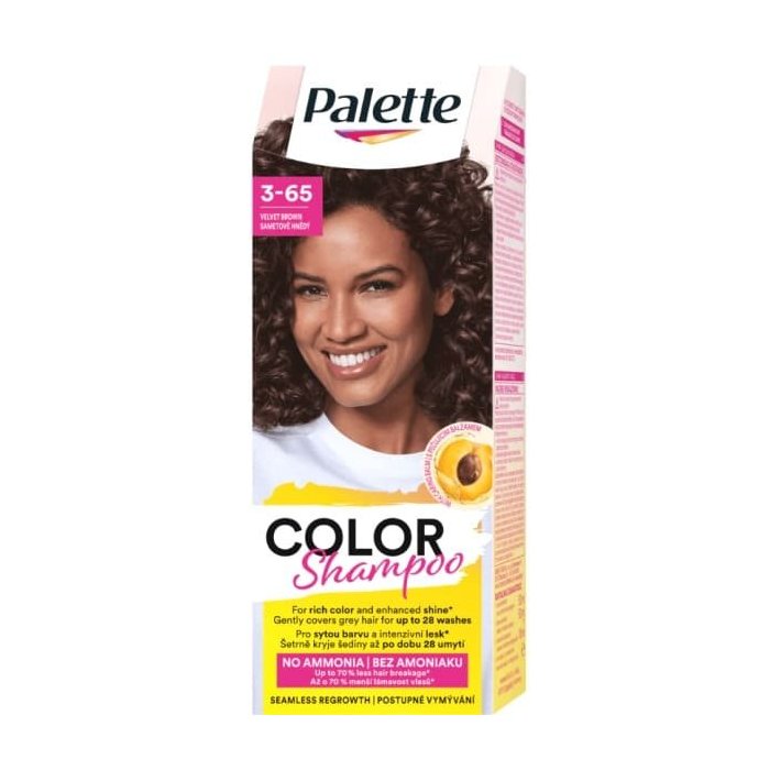 Vyskúšajte Palette Color Shampoo farbu na vlasy s dvojitým komplexom starostlivosti. Šetrná farba, ktorá sa počas farbenia vlasov stará o vlasy a dodáva im až o 50 % viac lesku. Zloženie bez amoniaku zlepšuje štruktúru vlasov a poskytuje im starostlivosť od korienkov až po končeky počas farbenia. Dovoľte vašim vlasom odhaliť dokonalý lesk.