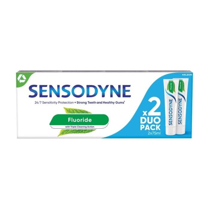 Zubná pasta s fluoridom Sensodyne Fluoride bola špeciálne vyvinutá k účinnej ochrane citlivých zubov. Poskytuje pretrvávajúcu ochranu citlivých zubov, pomáha odstrániť nahromadený povlak, pomáha udržiavať zdravšie ďasná a osviežuje dych. Vďaka obsahu fluoridu pomáha chrániť pred zubným kazom.