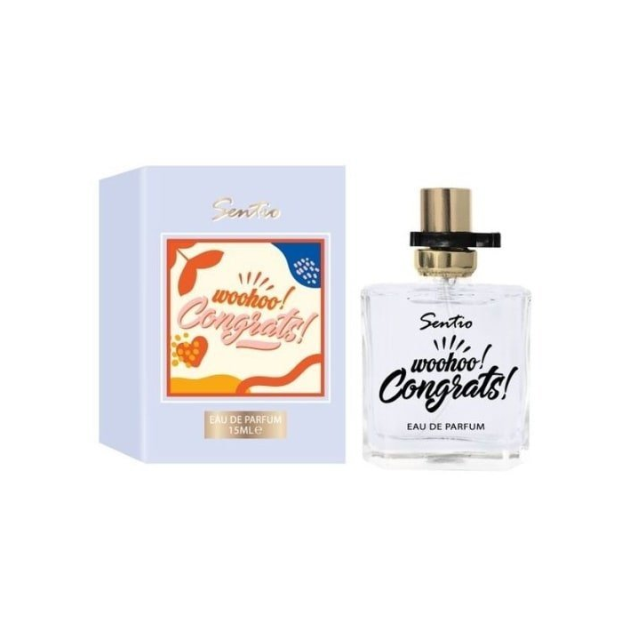 Ženský, zmyselný a ľahký kvetinový parfém. Tento elegantný parfum je doplnený o nápis "Woohoo! Congrats!"- Gratulujem!