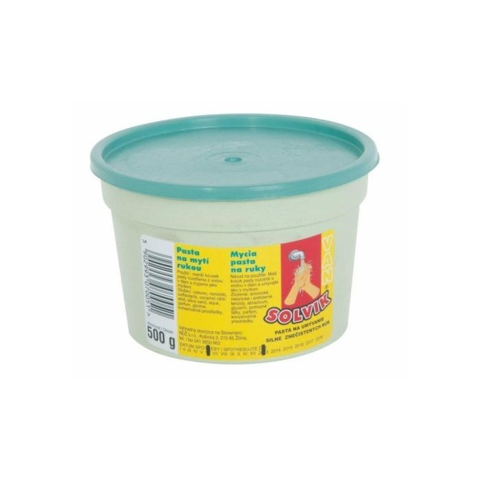 Solvik je vysokoúčinná pasta na čistenie rúk. Obsahuje špeciálne abrazívne častice.