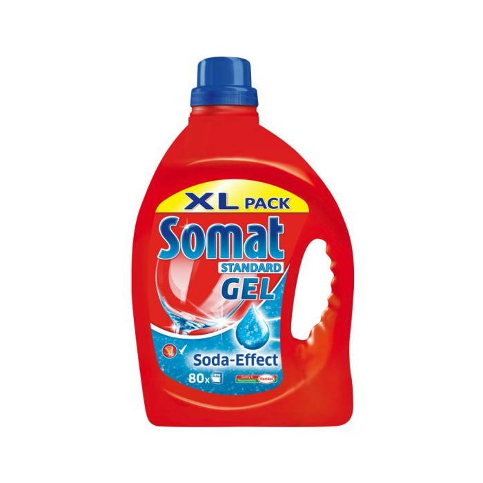 SOMAT Standard Gel, gél do umývačky riadu 2l SOMAT Standard Gel gél do umývačky riadu sa rýchlo rozpúšťa a odstraňuje aj tie njodolnejšie nečistoty. Je to tekutý prostriedok do umývačky, ktorý má vo svojej receptúre Soda Effect pre dôkladné umývanie riadu. Riad bude neprekonateľne čistý a žiarivo lesklý. Výhodou gélu je možnosť dávkovania podľa potreby.
