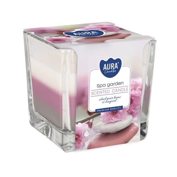 Dekoratívna 3-farebná vonná sviečka v skle.