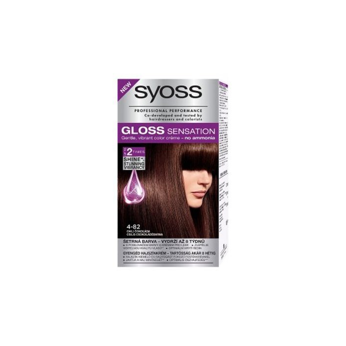 Syoss Gloss Sensation, Šetrná farba na vlasy s posilňovačom farby a krémom pre lesk, odtieň 4-82 Chili čokoláda Povedzte áno ohromujúcej sviežosti farby, povedzte áno senzačne žiarivým vlasom! Syoss Gloss Sensation: - farbiaci krém pre lesk a úžasný žiarivý farebný výsledok - až na 8 týždňov - až 2x viac lesku (v porovnaní s neošetrenými vlasmi) - oslňujúce oživenie farby - šetrné farby - optimálne krytie šedín Posilňovač farby a krém pre lesk: Dvojito účinný posilňovač farby bez amoniaku a krém pre lesk viditelne oživí farbu a lesk vlasov. Farebné mikročastice sú zanesené do povrchu vlasov pre úžasný farebný výsledok. Ochranná žiarivá vrstva uzavre farbu vo vlasoch a dodá im vysoký lesk. Farbiaci krém pre lesk, tmavo hnedé odtiene s oslňujúcimi čokoládovými a teplými zlatými odleskami, postupne zmývateľná farba - vydrží až 8 týždňov, s posilňovačom farby a krémom pre lesk, viditeľne zlepšuje kvalitu vlasov, optimálne kryje šediny, o 50 % menšia lámavosť vlasov a rozštiepených konečkov v porovnání s neošetřenými vlasmi.