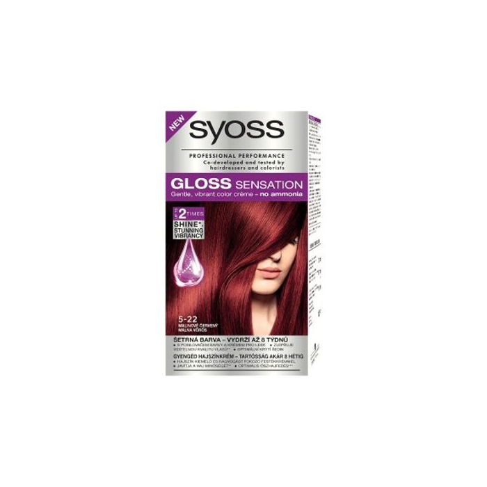 Syoss Gloss Sensation, Šetrná farba na vlasy s posilňovačom farby a krémom pre lesk, odtieň 5-22 Červená malina Povedzte áno ohromujúcej sviežosti farby, povedzte áno senzačne žiarivým vlasom! Syoss Gloss Sensation: - farbiaci krém pre lesk a úžasný žiarivý farebný výsledok - až na 8 týždňov - až 2x viac lesku (v porovnaní s neošetrenými vlasmi) - oslňujúce oživenie farby - šetrné farby - optimálne krytie šedín Posilňovač farby a krém pre lesk: Dvojito účinný posilňovač farby bez amoniaku a krém pre lesk viditelne oživí farbu a lesk vlasov. Farebné mikročastice sú zanesené do povrchu vlasov pre úžasný farebný výsledok. Ochranná žiarivá vrstva uzavre farbu vo vlasoch a dodá im vysoký lesk. Farbiaci krém pre lesk, tmavo hnedé odtiene s oslňujúcimi čokoládovými a teplými zlatými odleskami, postupne zmývateľná farba - vydrží až 8 týždňov, s posilňovačom farby a krémom pre lesk, viditeľne zlepšuje kvalitu vlasov, optimálne kryje šediny, o 50 % menšia lámavosť vlasov a rozštiepených konečkov v porovnání s neošetřenými vlasmi.