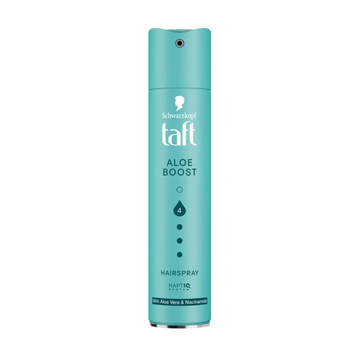 Taft Aloe Boost lak na vlasy – pre dokonalý účes s pocitom hydratácie! Lak na vlasy s Haptiq systémom, ktorý vytvára mikroväzby a posilňuje štruktúru vlasu. Dlhotrvajúca fixácia a hladký povrch vlasov bez zlepenia.