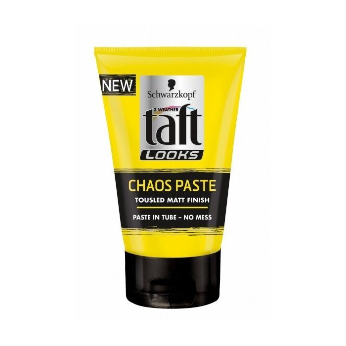 TAFT Chaos Paste, pasta na vytvarovanie účesu v tube 100ml Vytvaruj si vlasy a vytvor si strapatý, matný look s Taft Chaos Paste. Mega silná fixácia a chaotický účes po celý deň. Aplikácia: Nanes pastu na suché alebo uterákom presušené vlasy.