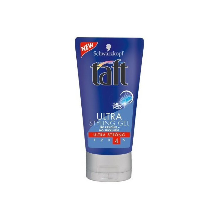 TAFT Ultra, stylingový gél s ultra pevnou fixáciou 150ml Ultra pevná fixácia pre všetky typy účesov. Taft Ultra nezlepuje vlasy, nezanecháva zvyšky a ľahko sa vymýva. Vlasy zostávajú pružné a nevysušujú sa.